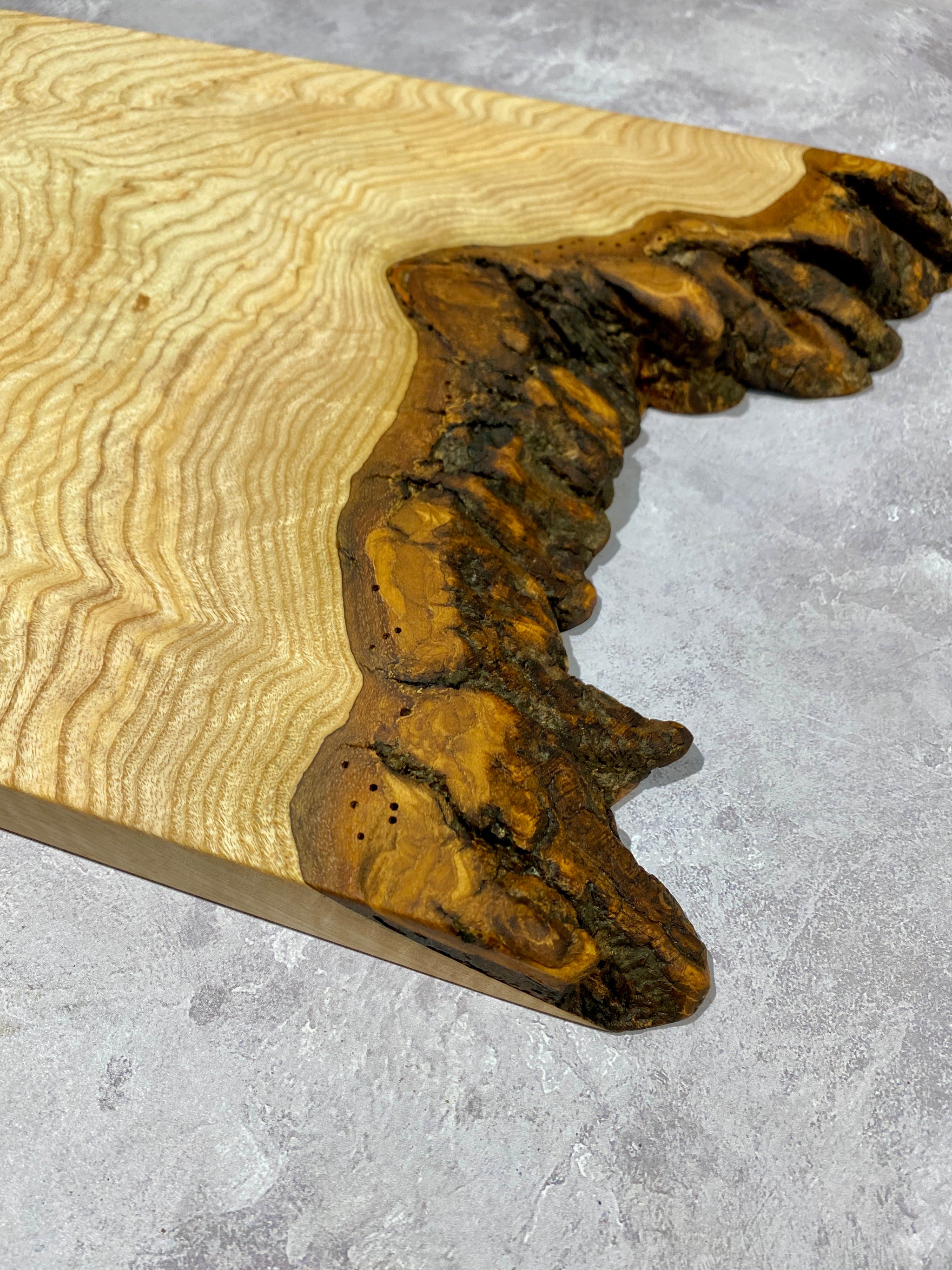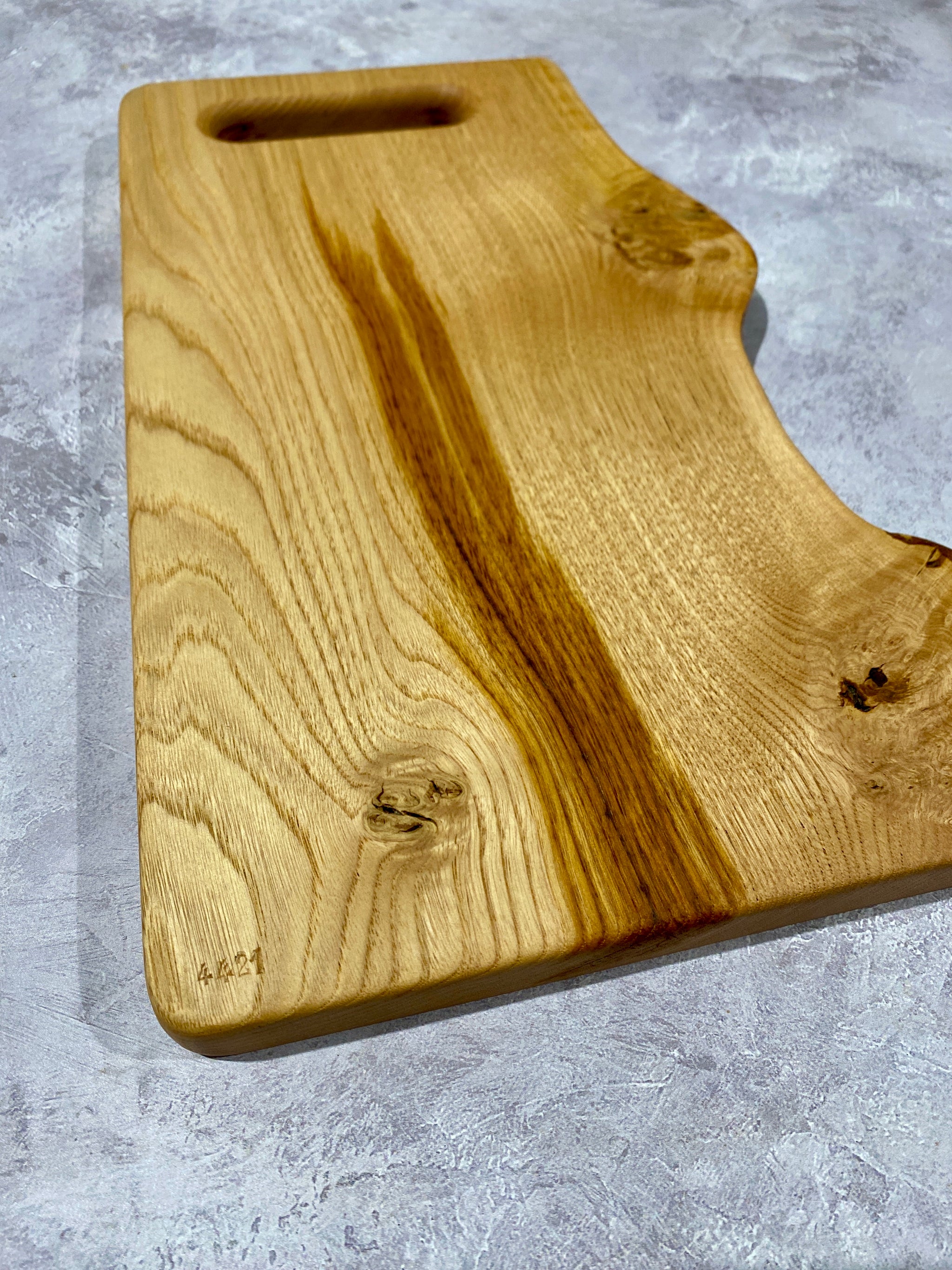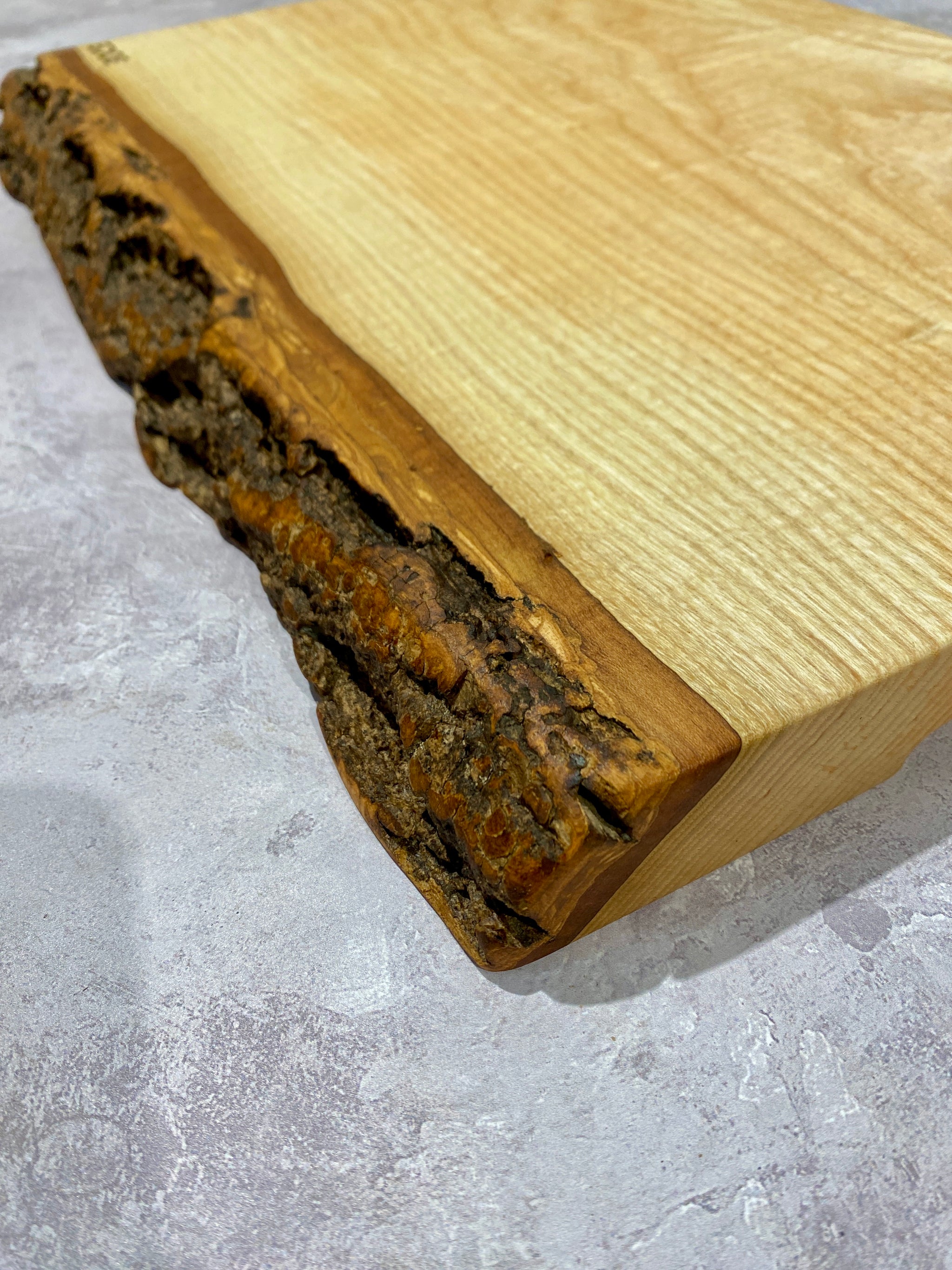 Every board is food safe for preparation, serving and eating on. Each one is stamped with a unique number and finished with my own blend of board butter made using natural bees wax and oils, that give a food safe, protective coating while nourishing the timber.